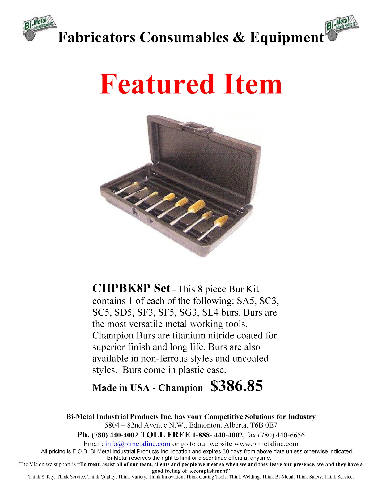 We bring forward our carbide burs and sets from Champion Cutting Tools.